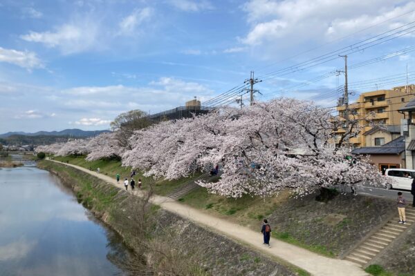The Takano River, located upstream of the Kamo River, is flanked by cherry blo …